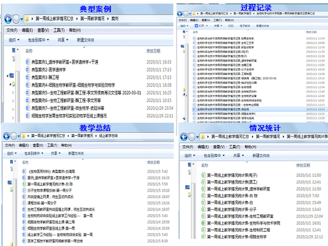 学院管理人员全员参与线上教学的全程督导。学院班子成员和教研办、学工办老师全都成为了各线上课程的“旁听生”,落实了对所有开课课程的全部教学环节的督导。同时,及时组织典型教学案例的分享,推广优秀教师的先进经验,对授课过程中发现的问题给予针对性的指导,积极推动“线上金课”的建设和完善。