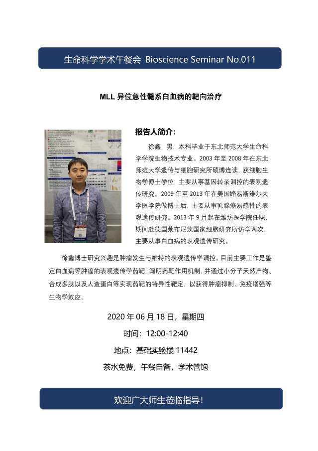 题 目:《MLL异位急性髓系白血病的靶向治疗》