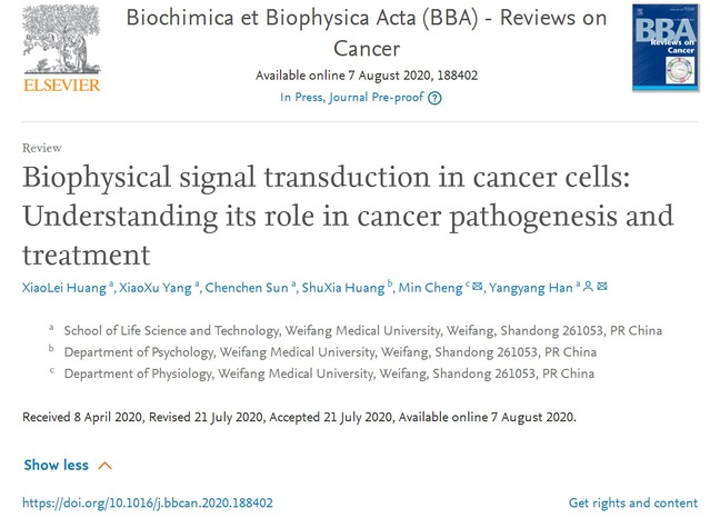 黄晓蕾:《Biophysical signal transduction in cancer cells: understanding its role in cancer pathogenesis and treatment》