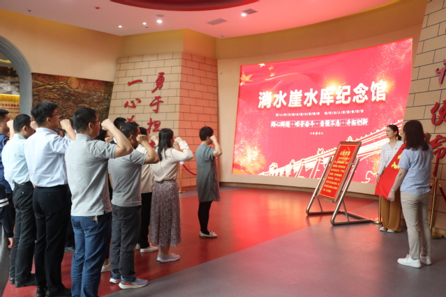 党员现场参观了淌水崖水库,感受了淌水崖水库工程的雄伟壮阔,并怀着敬仰之情参观了淌水崖水库纪念馆,听取了工作人员对淌水崖水库建设历程的讲解。全体党员在党旗下,举行了老党员重温入党誓词、新党员宣誓。党员纷纷表示一定学习发扬淌水崖水库建设精神,用实际行动践行“学党史、悟思想、办实事、开新局”的党史学习教育目标要求,立足本职,充分发挥党员的先进性,在本职岗位上做出更大的成绩。