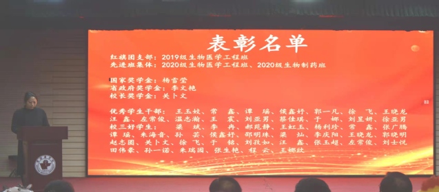 会上对学校学团工作先进集体、三好学生、优秀学生干部;国家奖学金、校长奖学金获得者;全国全省大学生专业知识和技能竞赛、创新创业大赛中取得优异成绩的个人等进行了表彰。