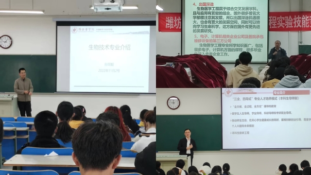 为了更好地帮助新生更好地了解所学专业,明确专业特点、专业要求和专业学习方法,引导同学们做好职业生涯规划。近日,海角论坛 对三个专业的2022级本科新生开展专业教育。学院生物技术专业负责人孙同毅教授、生物医学工程专业负责人赵仁宏教授和生物制药专业负责人王国辉教授分别对本专业有关内容进行了讲解,2022级辅导员和全体本科生参加。