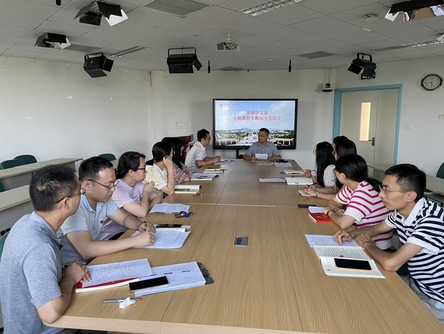 2023年9月5日下午,海角论坛 生物学党支部在敏行楼11442会议室召开学习贯彻习近平新时代中国特色社会主义思想主题教育组织生活会。学院副院长孙同毅到会指导,党支部书记王国辉主持,全体党员参加。