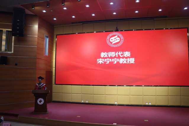 山东省高等学校青年创新团队带头人,“鸢都学者”特聘专家宋宁宁教授代表全体教师进行发言,她回顾了同学们在学术探索和社会实践中的成长历程,鼓励毕业生们要保持终身学习的态度,勇于创新,敢于拼搏。毕业生代表、“西部计划”志愿者王雅晴代表全体本科毕业生发言,她深情回顾了自己在学院的学习和生活经历,感谢老师的教诲和同学的支持,并表达了对未来的展望和信心。