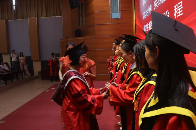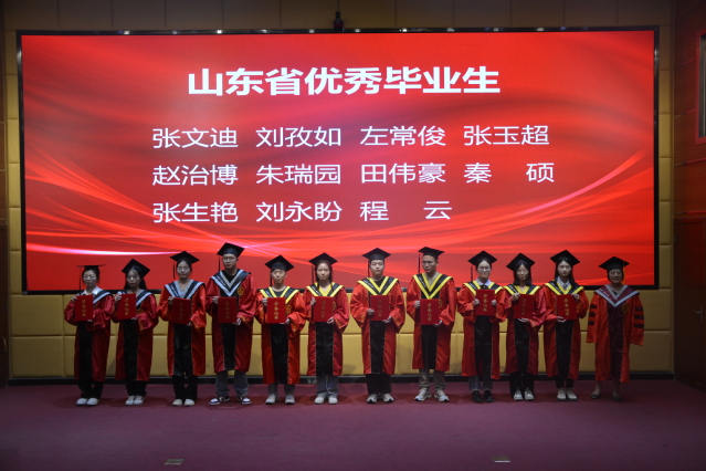 院长高志芹为获得“山东省优秀毕业生”的同学进行颁奖。希望同学们带着学院的期望、师长的嘱托和家长的祝福,扬帆远航,乘风破浪,创造属于自己的精彩人生!在学位授予仪式环节,学院学位评定分委员会老师们为毕业生逐一拨穗正冠、颁授学位证书。全体毕业生身着学士服,依次走上舞台,在全场师生的见证下,共享荣耀时刻,这一刻是对他们学业成就的认可,也是对他们未来道路的美好祝愿。
