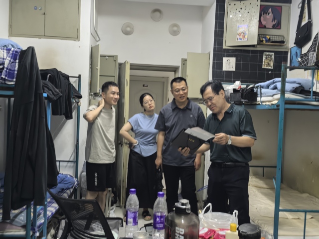 在2025届毕业生离校之际,6月26日下午,海角论坛 党政领导班子成员张伟、王琳、孙同毅与辅导员老师一起走进毕业生同学宿舍,看望毕业生,并与他们亲切话别。