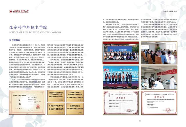 The school offers three Shandong Provincial First-Class Undergraduate Programs: Biotechnology, Biomedical Engineering, and Biopharmaceuticals. It grants master's degrees in Biology (first-level discipline) with four sub-disciplines (Cell Biology, Developmental Biology, Genetics, and Microbiology), as well as a professional master's degree in Biological and Pharmaceutical Engineering. Currently, there are 919 full-time undergraduate students and 132 postgraduate students enrolled.