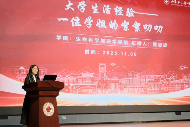 霍思旋围绕“学习与成长”主题,结合自己的考研经历,分享了“目标导向、路径规划”的学习方法。她建议同学们尽早通过大学英语四六级考试,并鼓励大家主动与导师沟通、积极参与实验室科研项目。同时,她指出学生会和班委经历有助于培养沟通协调、活动策划与问题解决等综合能力,是实现全面发展的重要途径。